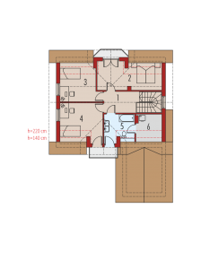 Mi smo odvojili dve celine. Jedna celina je dnevni boravak u prizemlju i naša, roditeljska spavaća soba, dok je sprat predviđen za decu. Na spratu će se nalaziti tri sobe, kupatilo i jedan mali foaje gde će deca moći da imaju dnevni sadržaj za igranje, za vežbanje, malu biblioteku. Najvažnije nam je bilo bilo da imamo tri spavaće sobe, da svako dete može da ima svoju sobu. Gledali smo da sobe budu taman onolike koliko su potrebne, od 9 do 12m2.