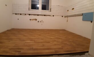 Svuda u kući je postavljen Tarket laminat. Ekonomičnost i brzina postavljanja, su glavni razlozi zašto smo se odlučili za ovu vrstu podnih obloga. Kompletni radovi na postavljanju podova, završeni su za manje od 8 sati.